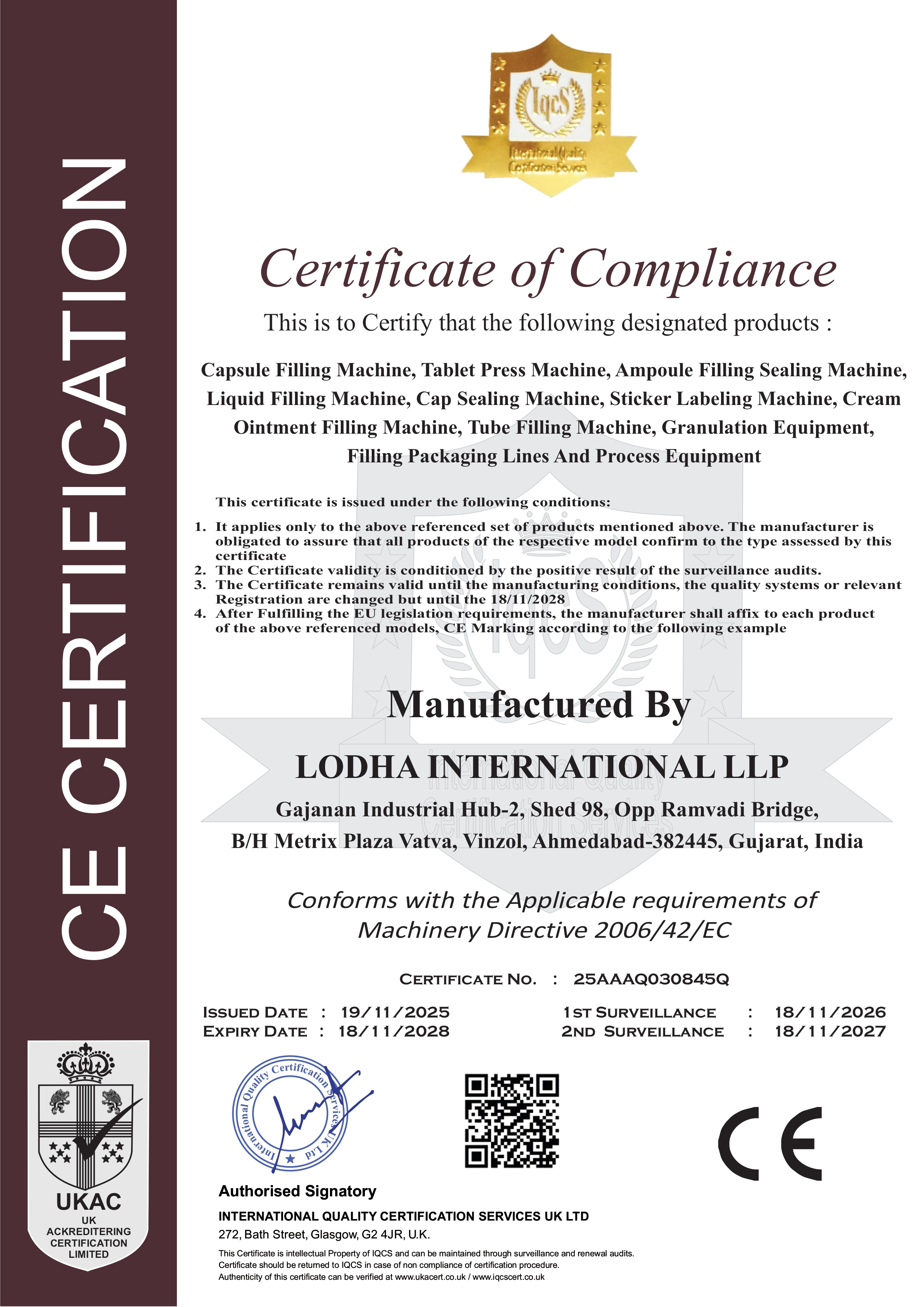 All our components are from highly qualified brands and they fully comply with the latest international standards as set by ISO 9001:2015, cGMP, CE and other regulatory bodies.